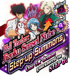One 5★ demon guaranteed Bonus: Tome of Hell Teacher: Jigoku Sensei Nube × 10 |