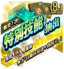 HP在80%以下或受到全體攻擊時,發動「恢復自身30%HP,並賦予1層增強」。